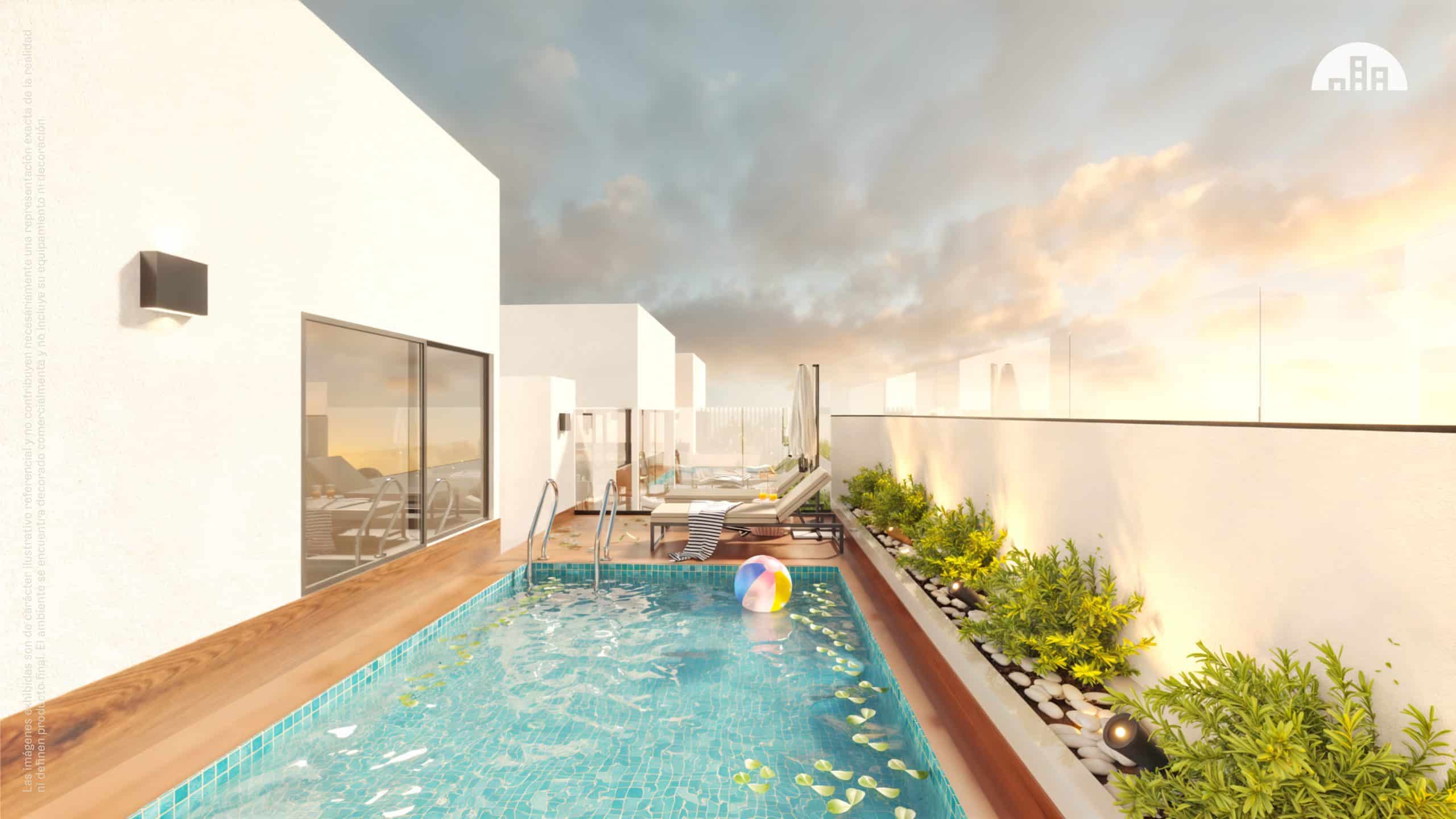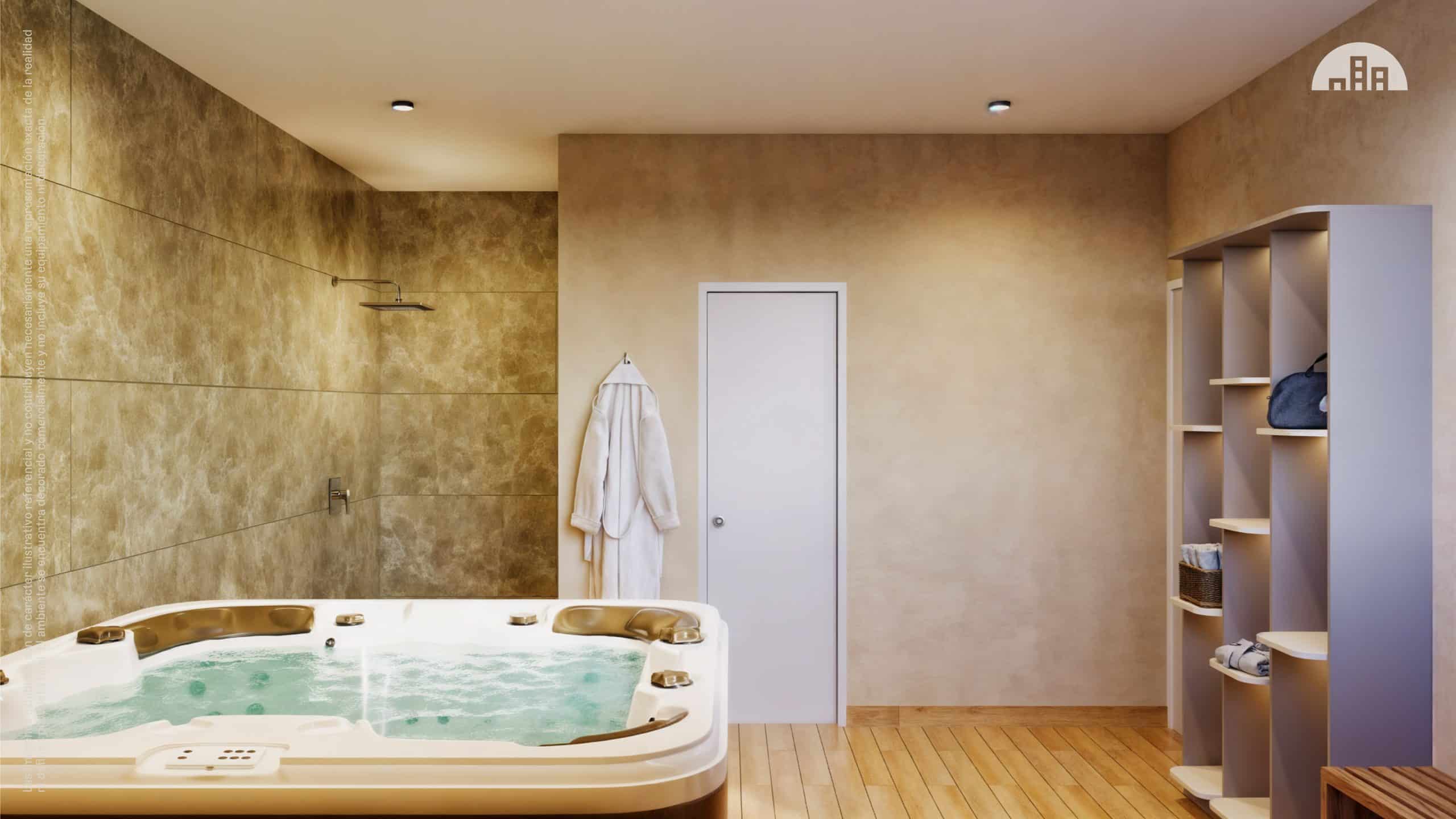 No tendrás que preocuparte por el calor del verano, ya que contamos con un jacuzzi exterior en la azotea, donde podrás relajarte y disfrutar de una vista panorámica de la ciudad. Además, te ofrecemos la oportunidad d disfrutar un estilo de vida de confort ya que contamos con un jacuzzi interior y mini spa ambientes pensados en tu máxima relajación.
