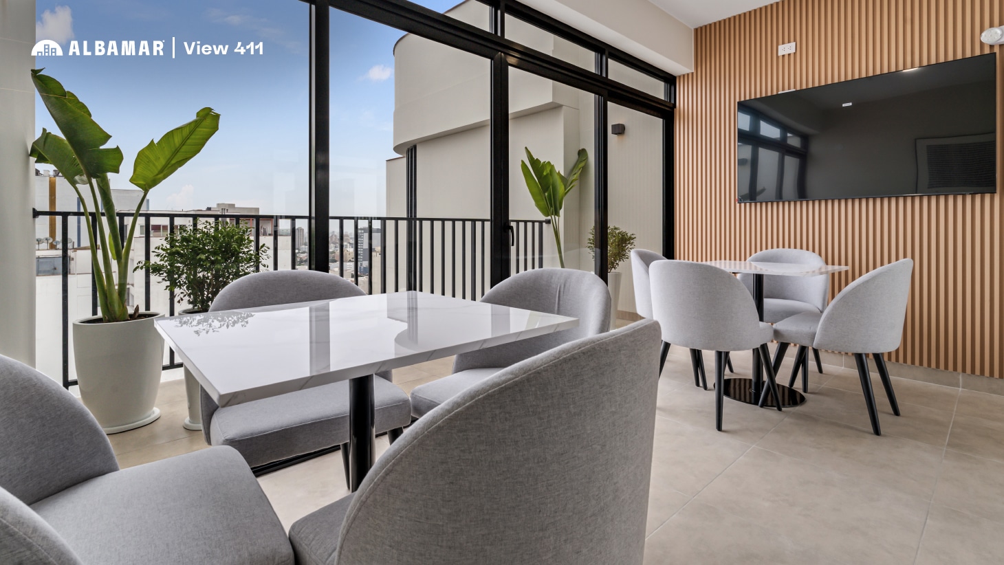 Albamar Grupo Inmobiliario, presenta el proyecto Albamar| View411, úbicado en Lima Moderna en el distrito de Jesús María. Edificio vanguardista con 22 pisos + azotea con Flats desde 57 m2 hasta 75 m2. Depas de 2 y 3 dormitorios con vista exterior.